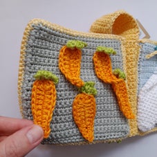 Alle houten onderdelen zijn gemaakt van onbehandeld en BPA vrij hout. Ik gebruik uitsluitend 100% katoengaren wat is goedgekeurd voor babyspeelgoed.