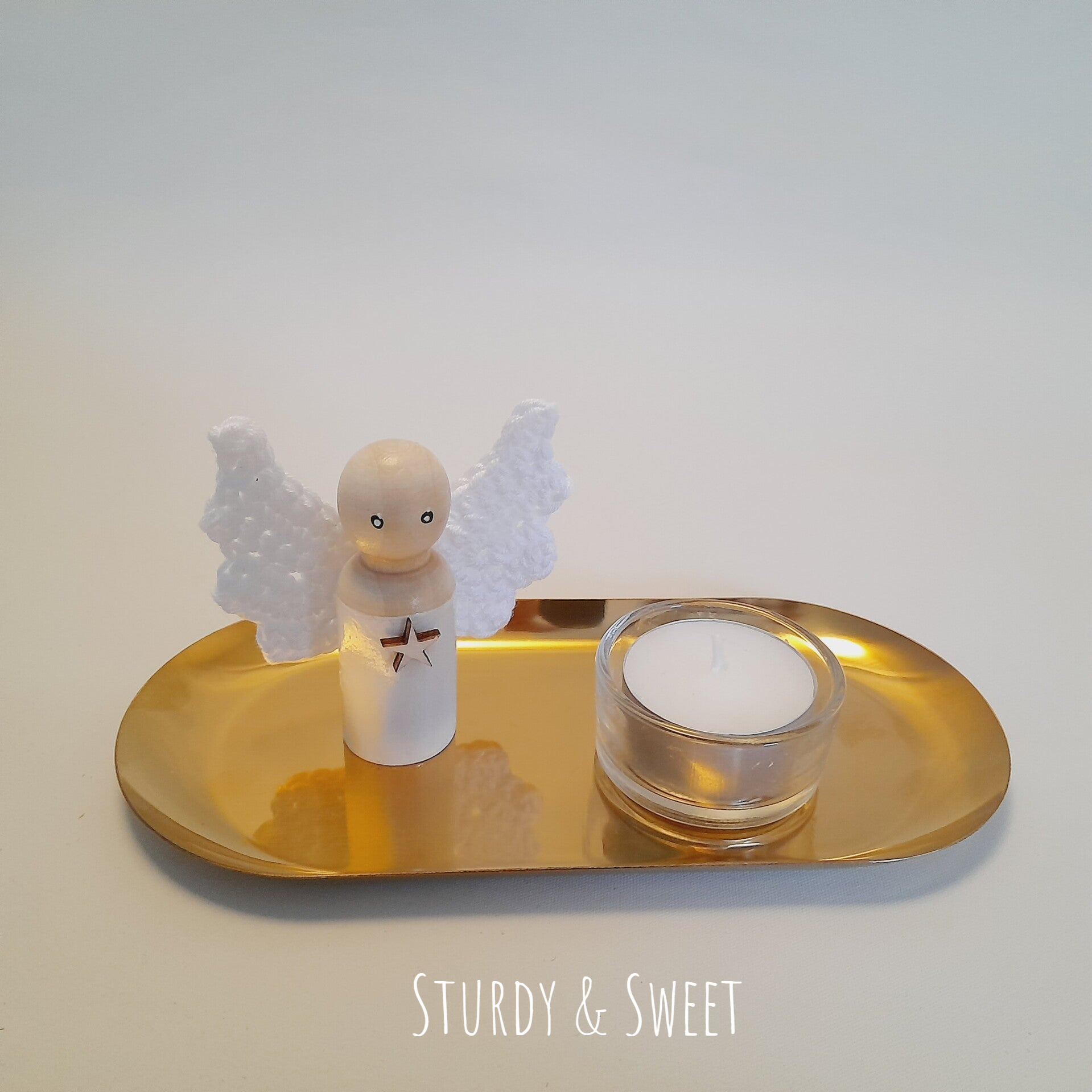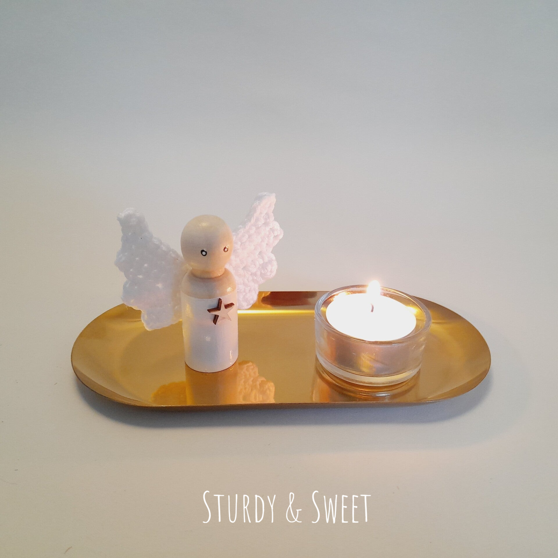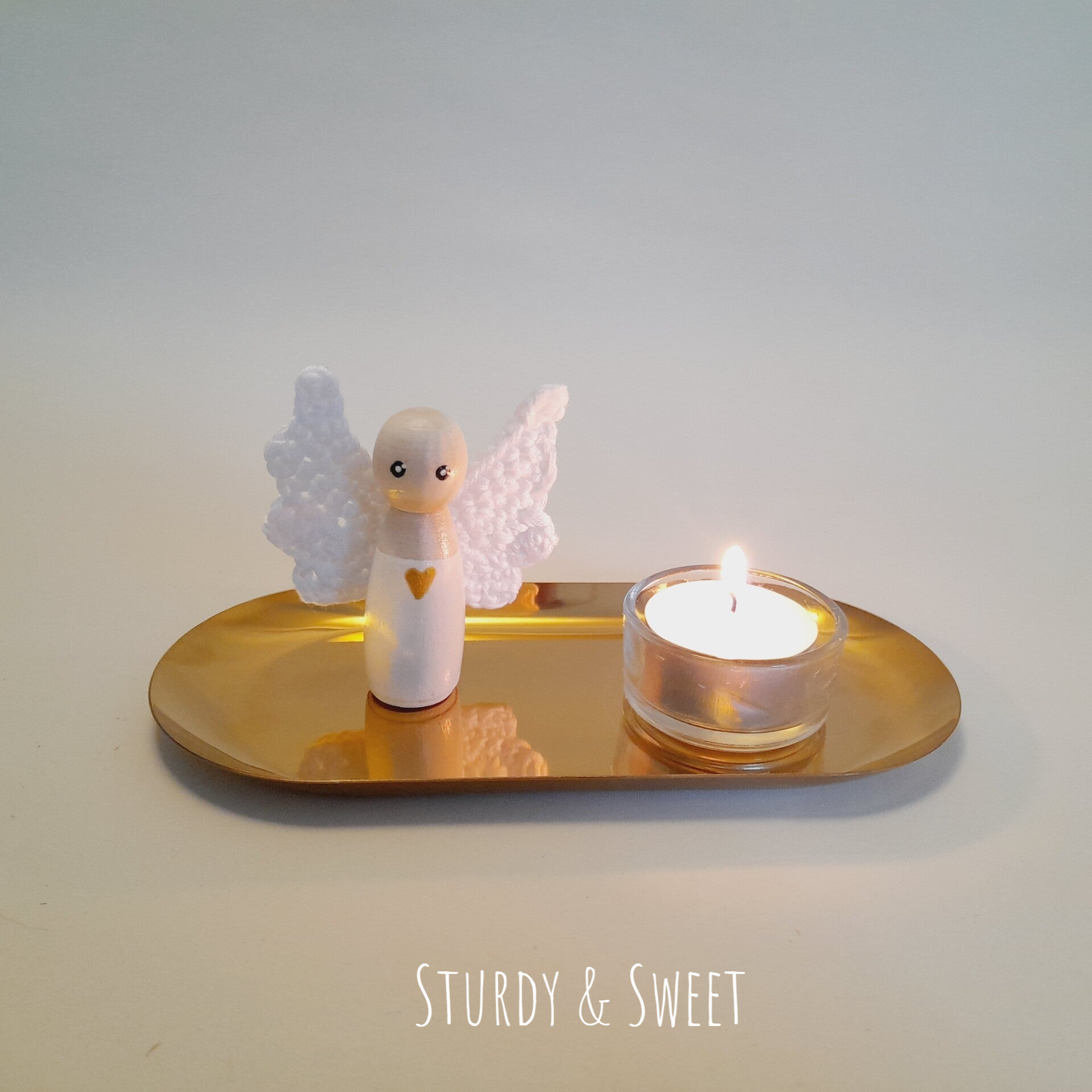 Engeltje met kaarsje op een gouden schaaltje