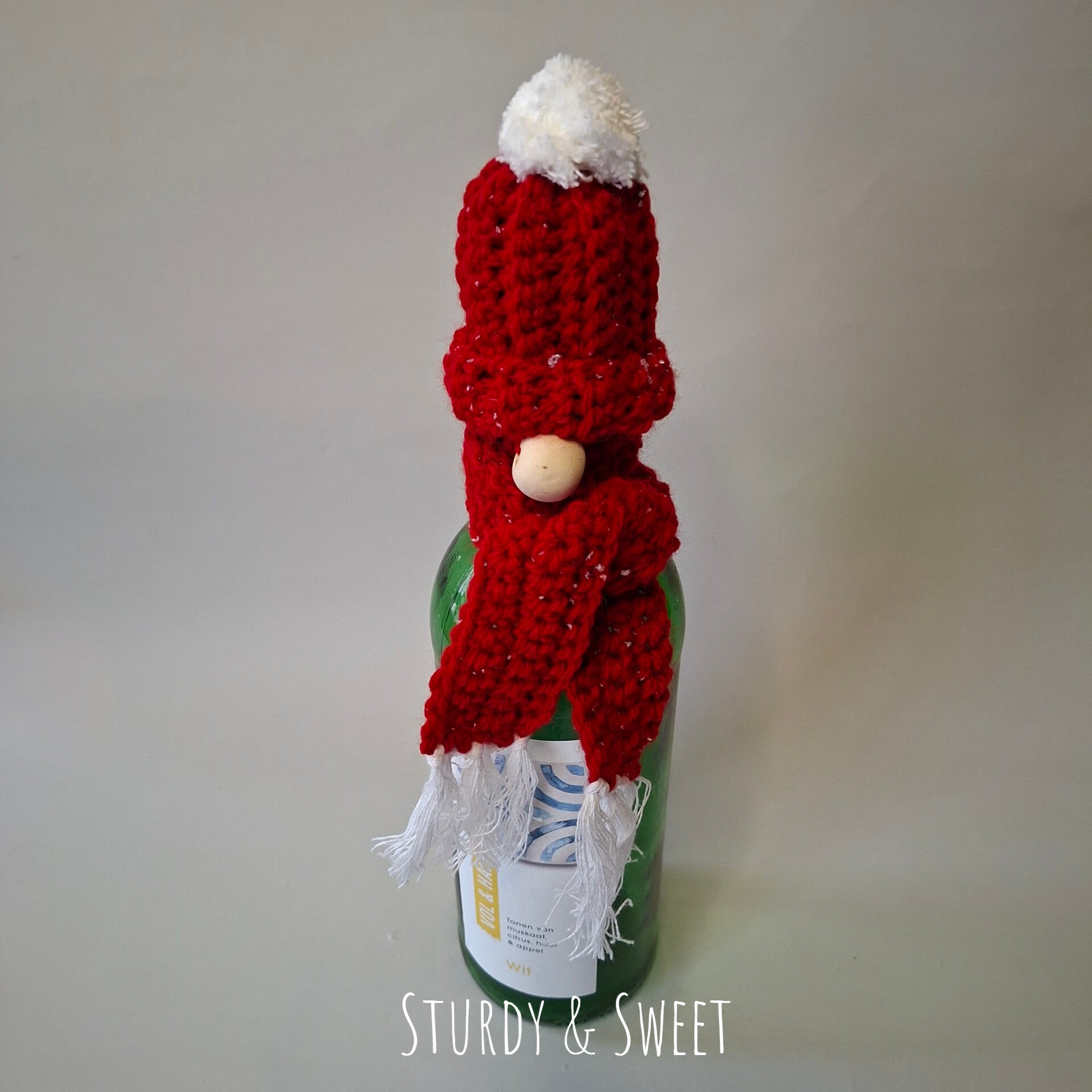 Sjaal en muts voor bierfles of kleine wijnfles rood